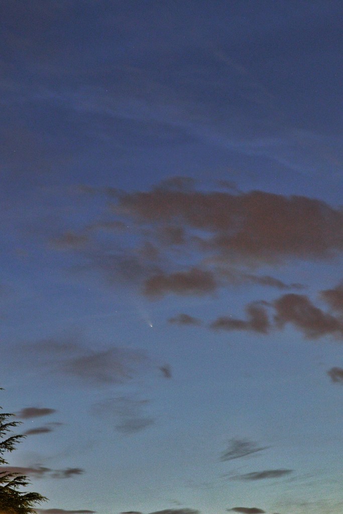 Dopo aver regolato la messa a fuoco e scansionato il cielo, finalmente ho intravisto la cometa tra le nuvole.